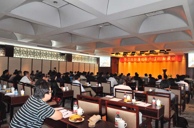 座谈会上,公司董事长华国平就公司目前科技创新情况作了汇报 总经理华一敏针对公司资本运作情况做相关介绍