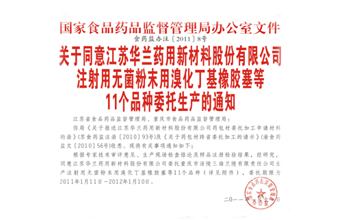 关于国家食品药品监督管理局同意suncitygroup太阳集团股份委托生产的通知