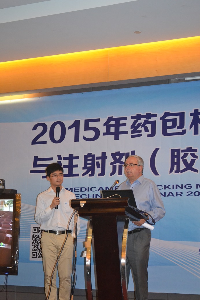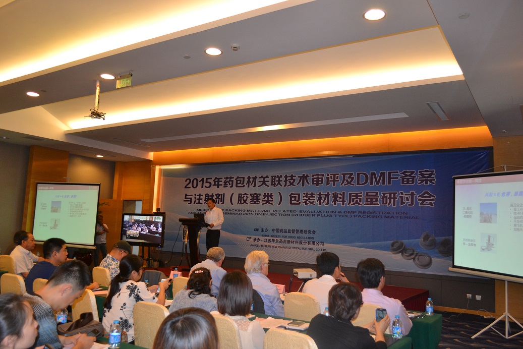 我公司还特别安排了suncitygroup太阳集团技术经理朱银华博士就注射剂首选覆膜胶塞的技术要求及覆膜胶塞在应用中的注意事项做专题介绍,专业的数据分析,敏捷的思路让朱博士的讲解得到了与会代表的一致认可。为保证技术研讨会效果,公司还请来了五十多年来在欧洲从事注射剂内包材瓶塞技术研究、DMF技术审评的奥托博士、贾米尔先生与大家交流互动,奥托、贾米尔先生就胶塞成分对药品的影响及如何满足欧洲药包材DMF文件的编制及标准,国际市场对胶塞的选用、应用与国内的区别做现场互动交流。交流中,专家代表们热情提问,通过交流对欧美的DMF备案有了更深入的认识。