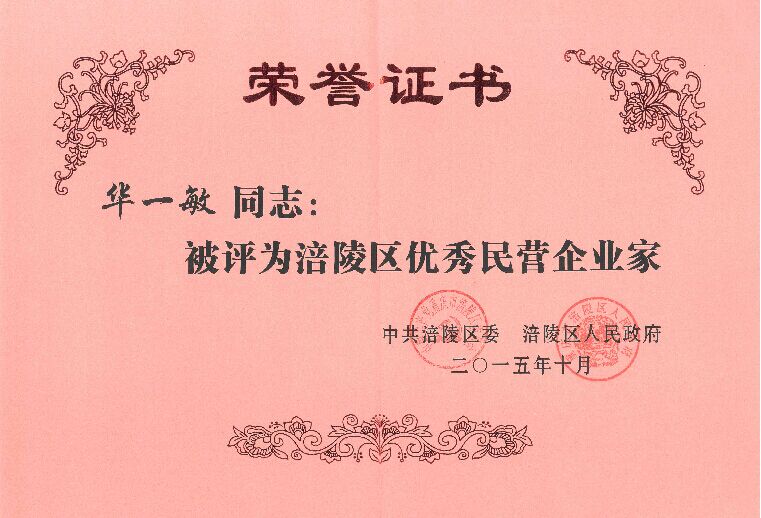 近年来,在涪陵区委、区政府高度重视和推动下,全区民营经济总量持续增加,结构不断完善,涌现出大批优秀民营企业家。为表彰先进民营企业对全区民营经济发展做出的重要贡献,涪陵区委、区政府决定授予包括我公司华一敏总经理在内的民营企业家“涪陵区优秀民营企业家”荣誉称号。.jpg)