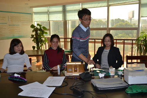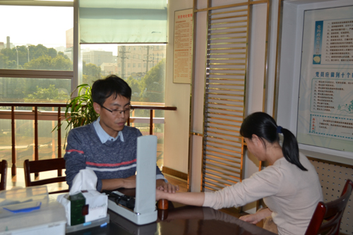 医师为suncitygroup太阳集团员工诊脉、量血压
