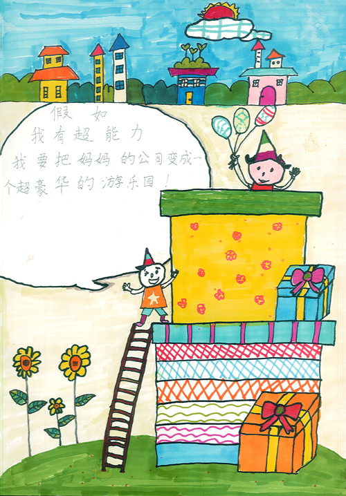 宋静媛(10岁)家长:陆娟 胶塞制造部 假如我有超能力,我要把妈妈的公司变成一个超豪华的游乐园,里面有很多很多游玩的地方,还有很多很多的礼物!