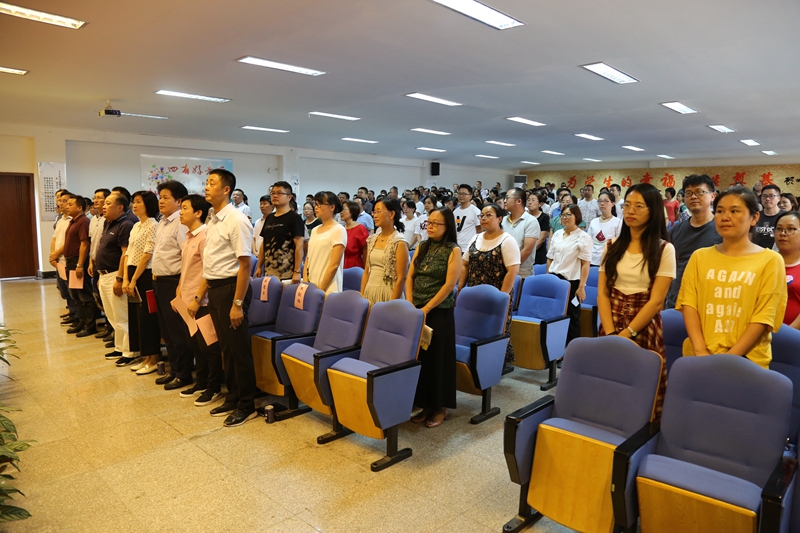 江阴一中全体教职员工共同参加了这次典礼。本次典礼由查建东、包彩娥老师主持。