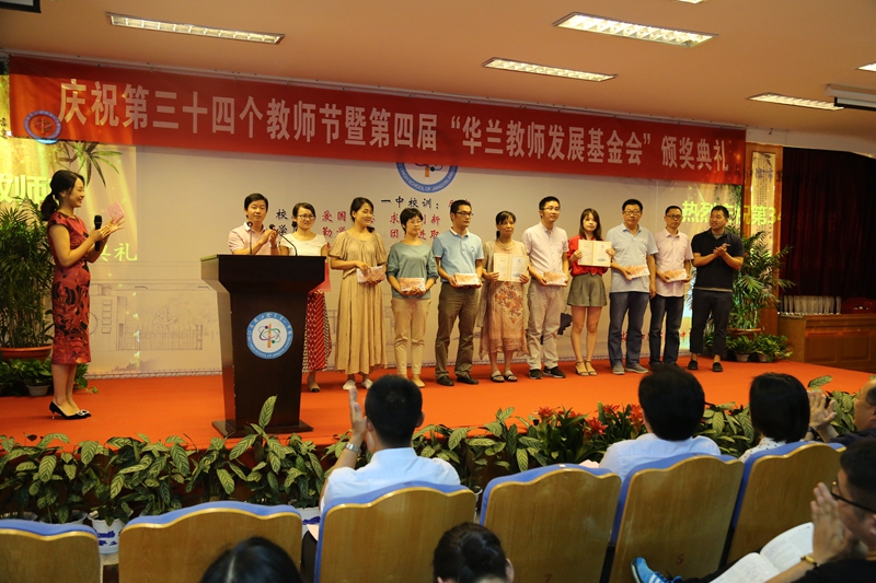 首先,由李忠校长为典礼致辞,对华国平先生、华智敏先生对一中的发展、对教育事业发展的大力支持表示了感谢,对全体老师表达了节日的祝福,对获奖的团队表示了祝贺。