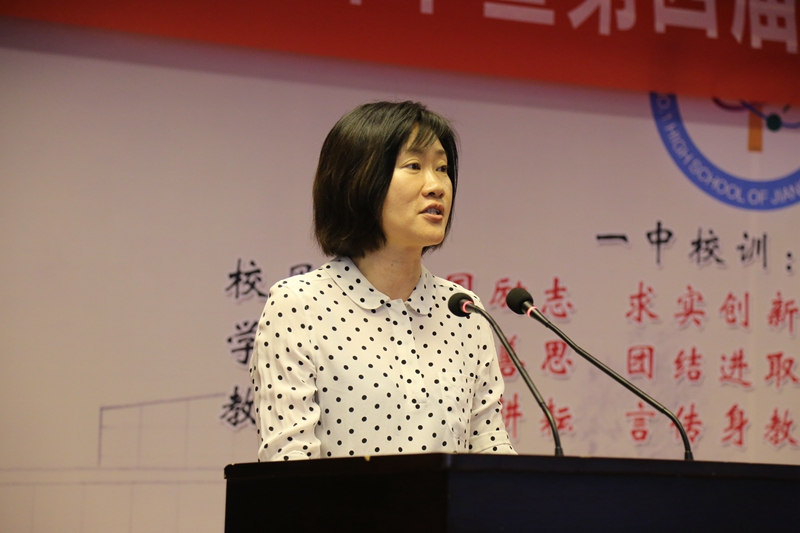许夏老师作为获奖团队代表发表了讲话,跟大家汇报了语文团队这一年来努力与成绩,表达对团队成员的由衷感谢,表达了对一中全体同仁们诚挚的祝福。