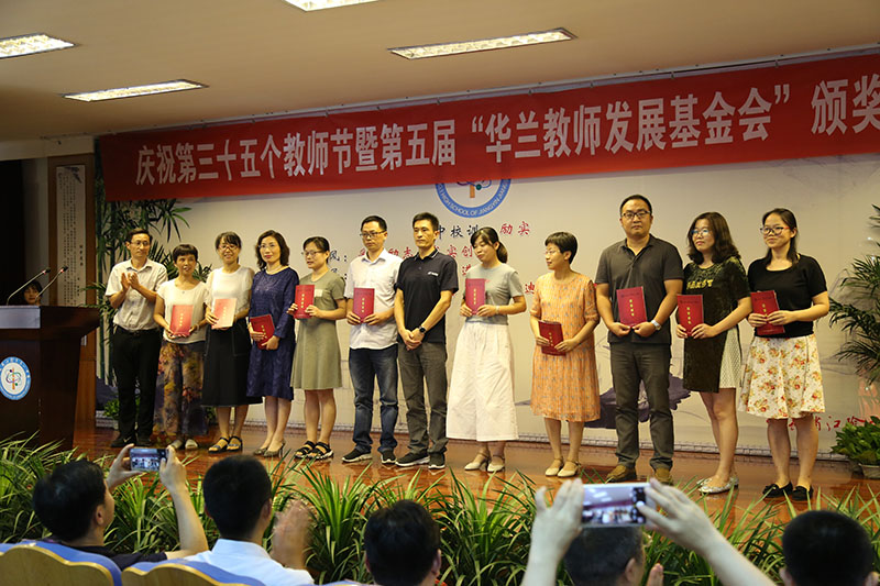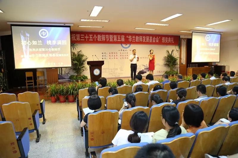 董事长华国平先生的发言质朴而真挚,充满了鼓舞人心的力量。他首先在讲话中表达了对全体老师们节日的问候,表达了对默默耕耘在教师这个岗位上的老师们由衷敬意,表达了对老师们最诚挚的祝福。他结合本次颁奖典礼,谈到了自己对教育的理解。首先,每一个教育工作者都是炎黄子孙,都是中华人民共和国的公民,爱国,是情感,也是责任。立德树人是教育的根本任务,教师崇德、修德、养德需要一个坚持不懈的的过程。他鼓励老师们与时俱进,跟上智能时代,培养出一批批优秀智慧的年轻人,为中华民族的崛起发挥出自己的一份力量!