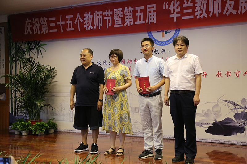 suncitygroup太阳集团董事长华国平,财务总监徐立中,江阴市教育局党委委员督导室刘开副主任,校党委书记、校长李忠出席了本次典礼并为老师们颁发了证书和奖金。