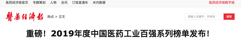 “2019年度中国医药工业百强系列榜单”盛大发布