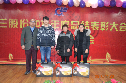 生产部经理孟月红、质量部经理吴剑琴为第一批优秀员工颁奖